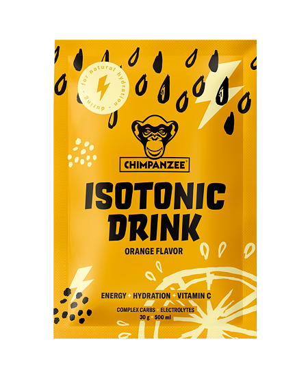 Chimpanzee Isotonic Drink Orange 30g is a powdered isotonic sports drink designed for rehydration and energy support during physical activity. Its formula helps maintain performance during longer exercise, improves water absorption, and combines different carbohydrate sources for more stable energy release.