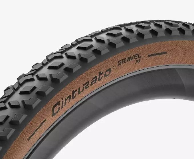 The Pirelli Cinturato Gravel M Classic folding tyre manages to combine a low weight with good off-road properties. To achieve this, medium-high blocks and a slightly larger distance between them were chosen for the tread, which in turn ensures good self-cleaning and guarantees optimal driving performance on a wide range of terrains.