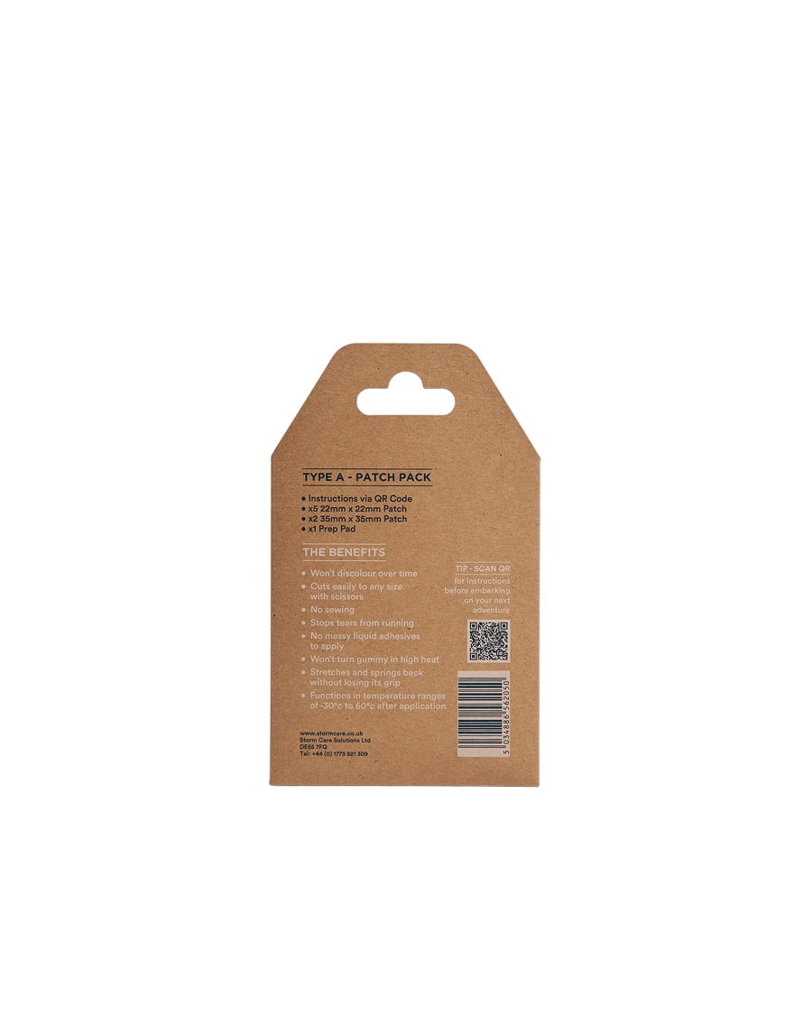 Storm Tear‑Aid Patch is an easy‑to‑use repair kit featuring transparent waterproof patches and tape that mend holes and rips in outdoor gear.
